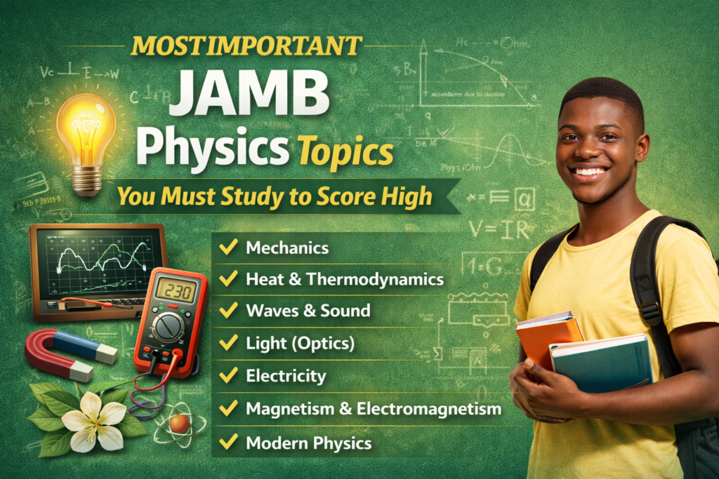 Scoring high in Physics is achievable when you focus on the most important JAMB Physics topics. With strong preparation in mechanics, heat, waves, optics, electricity, and magnetism, you can confidently aim for an excellent UTME score.